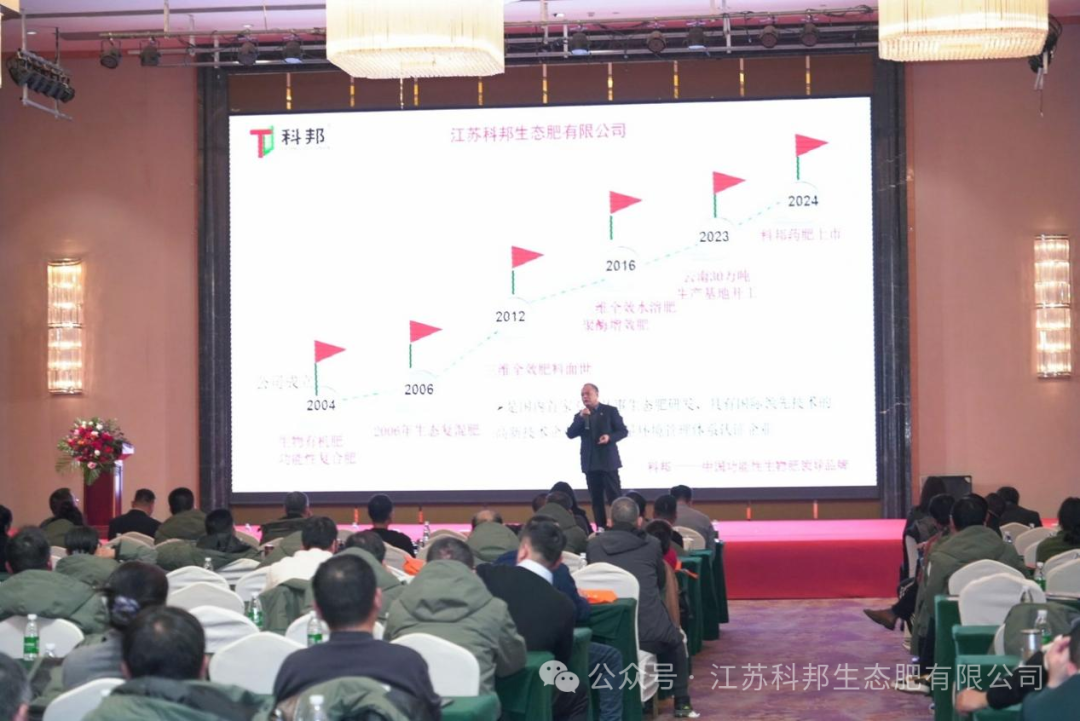 江苏科邦公司技术总监葛仁山发布新产品,涵盖“科邦蓝”“撒施金”“三维全效”“海藻肥”“功能药肥”“微生物肥” 等多款战略新品。精准覆盖不同作物需求,构建起多元化、高品质的产品矩阵,为市场拓展提供了强大支撑。